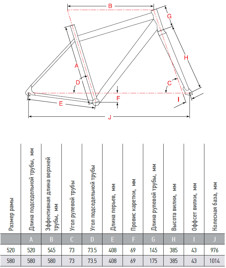 | Ростовка рамы | 520/580мм | |
